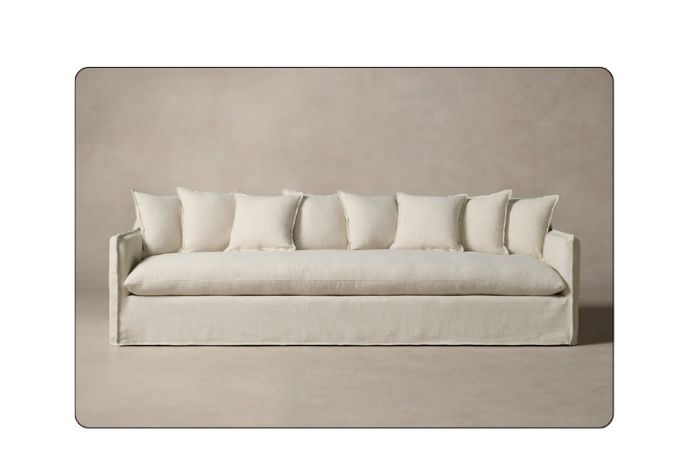 Boasting gently sloping arms, deep seats, and a beautifully tailored slipcover with hand-sewn flange seams, the Dune channels that relaxed California-cool vibe. Are you going for a beachy, modern organic, or elevated casual look? This minimalist yet sophisticated piece blends in and stands out.